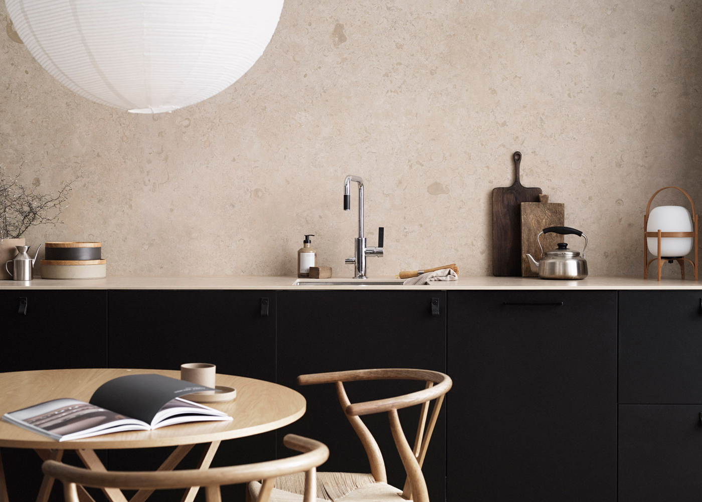 Norrvange Beige er en keramisk bordplade i en varm jordfarve med en mat overflade, rig på variation, fossilagtige og naturlige detaljer. Pladerne er inspireret af den gotlandske kalksten.