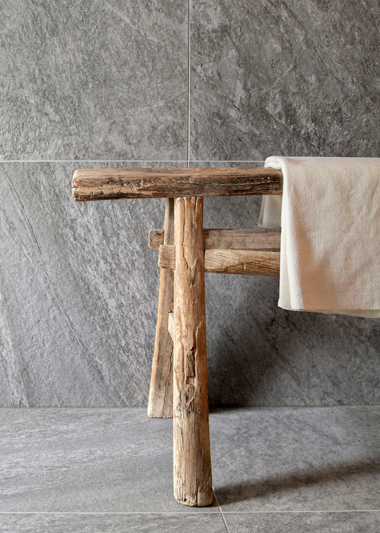 I dette projekt er Norrvange Light Grey specialskåret til at blive lagt i sildebensmønster