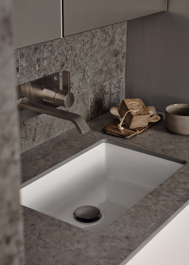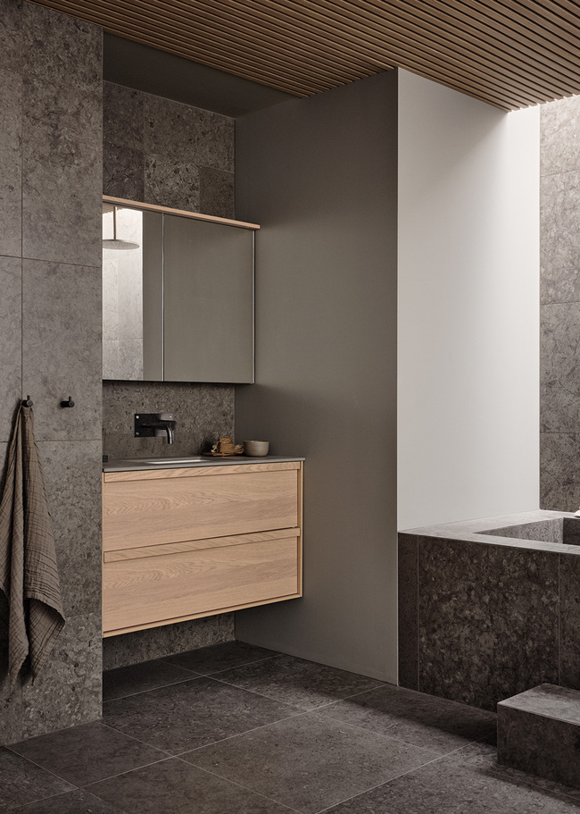 J Runö Dark Grey er en mørkegrå granitkeramik med kalkstensudseende i en mat overflade. Runö er meget naturtro med fossilagtige detaljer og smukke varierende toneforskelle mellem pladerne. Inspireret af stenen der udvindes langs kalkstensbæltet, som strækker sig fra Öland, under Østersøen og det gamle svenske landskab på øerne ud for Estlands kyst og videre gennem Tallinn op til St. Petersborg.