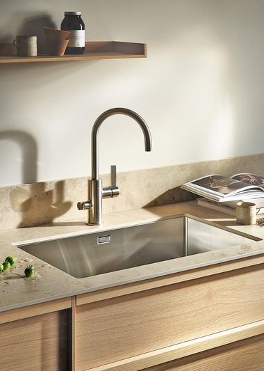 Bricmates keramiske bordplade Glanshammar Silk er en granitkeramik i stort format med en silkeblød overflade.
